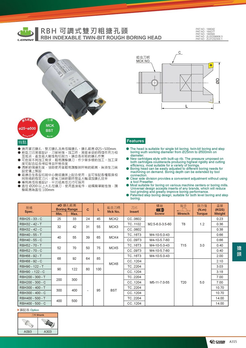 新型第二代LA鏜刀頭增加以下功能: