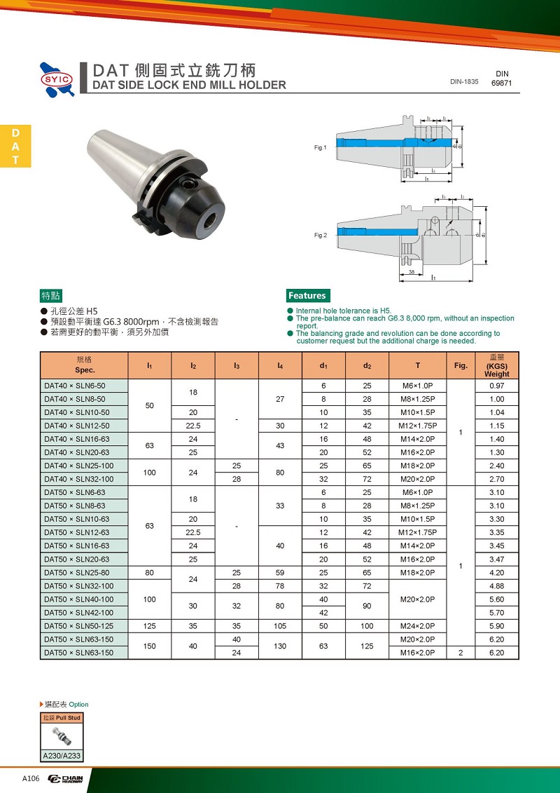 DAT平面銑刀柄