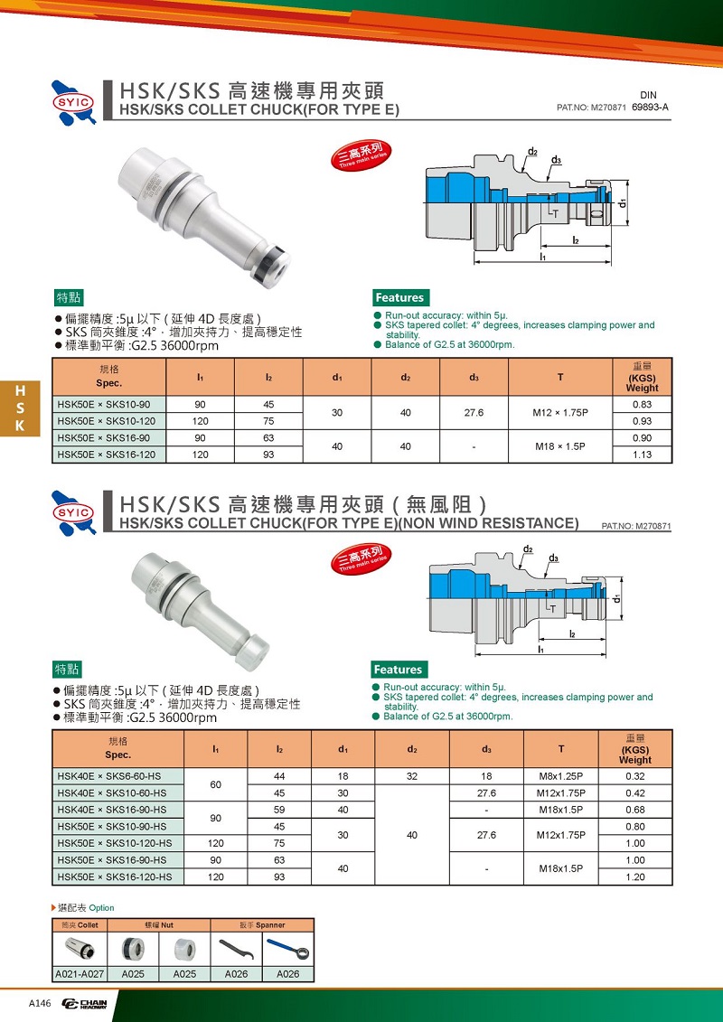 2. SKS筒夾錐度:4°,增加加持力、提高穩(wěn)定性。