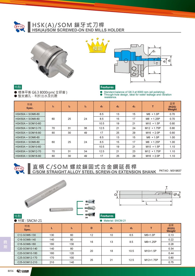 BT/HSK/SOM鎖牙式銑刀