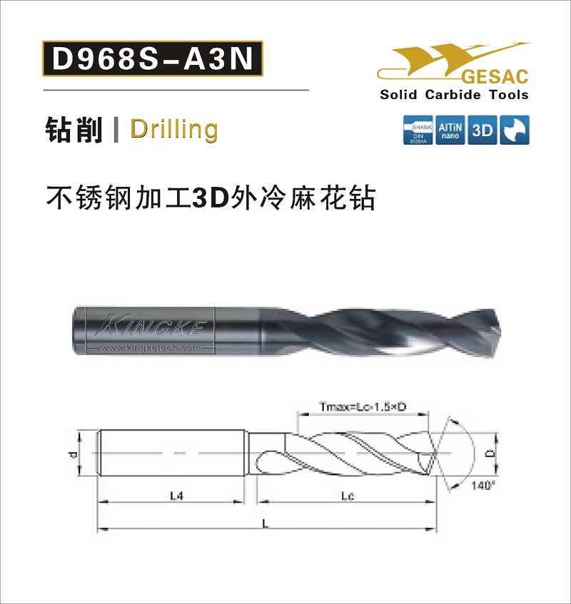 D968-A3C不銹鋼加工5D內(nèi)冷麻花鉆