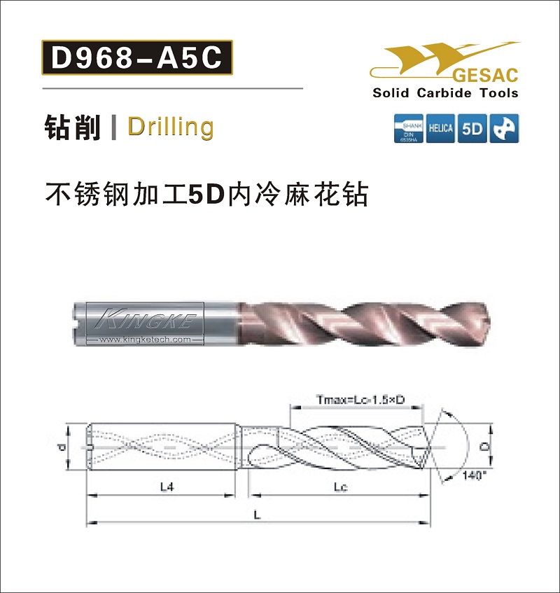 D968-A3C不銹鋼加工5D內(nèi)冷麻花鉆